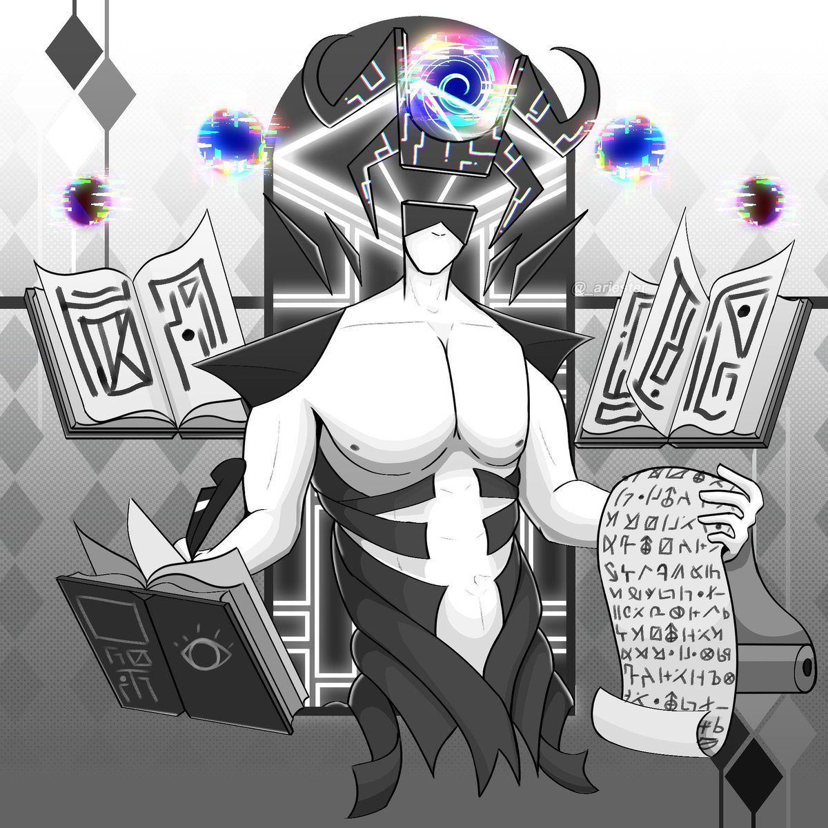 — The Primordial Lorekeeper 📖📜🪶 . #art #artph #ArtistsofSEA #ArtistOnTwitter #digitalart #oc #originalcharacter #CLIPSTUDIOPAINT #black #white #gray