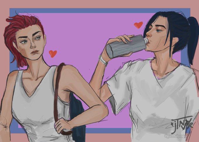 Their running late to their PE class!!! THIS AU PLEASE!! #piltoversfinest #arcane #arcanefanart #arcane #violyn #caitvi #CaitlynxVi twitter.com/_artfulpages/s…