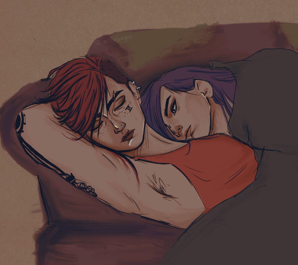 another day, another CaitxVi fanart! -- Cait woke up from a nightmare, Vi comforting her uwu #arcanefanart #arcane #arcaneart #violyn #CaitlynxVi #Caitvi #caitxvi #piltoversfinest