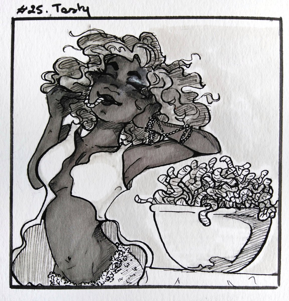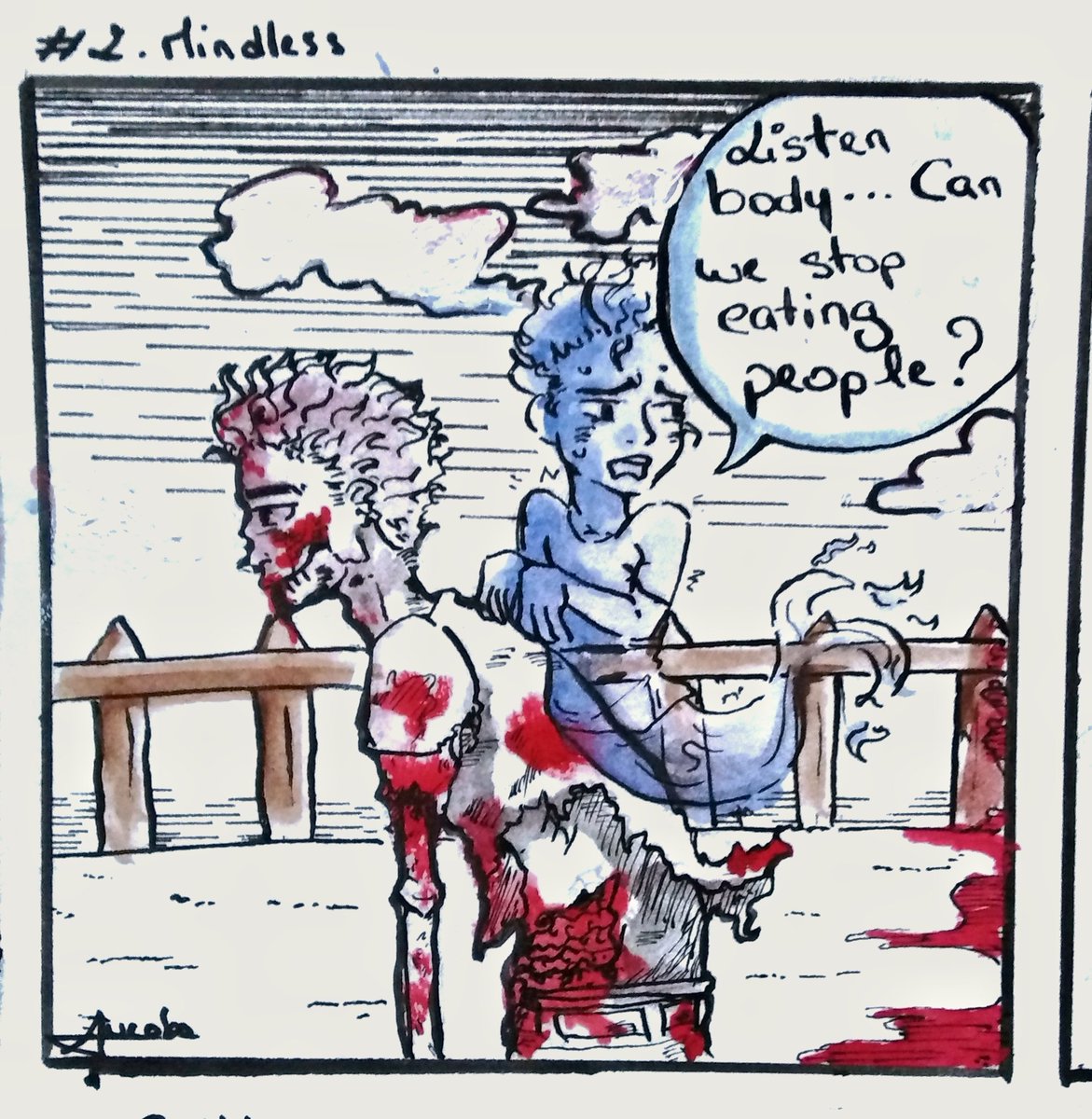 Day2 I didn't like this one when I finished it, And then I did Je n'ai pas aimé ce dessin quand je l'ai fini, et pis finalement si #inktober #inktober2019 #inkchallenge #inktoberchallenge #ink #inktoberday2 #day2 #mindless #zombie #ghost #blood #inkdraw #draw #drawing #drawingink