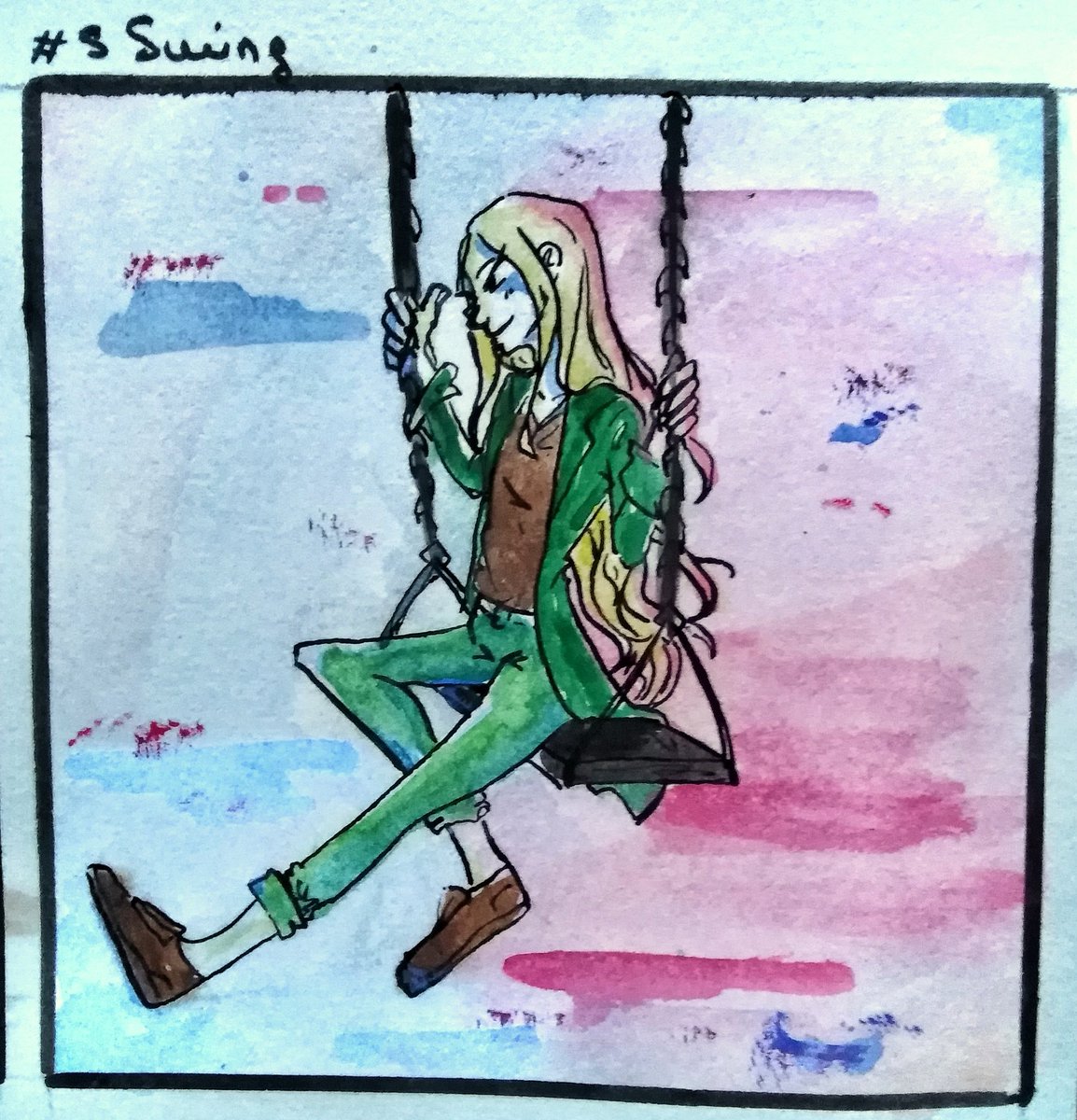 9 - Swing Looks more blue than I wanted Il à l'air plus bleu que prévu #inktober #inkchallenge #inktober2019 #ink #inktoberday9 #encre #dessin #dessin_4rt #draw #drawing #drawingchallenge #watercolor #day9 #swing #green