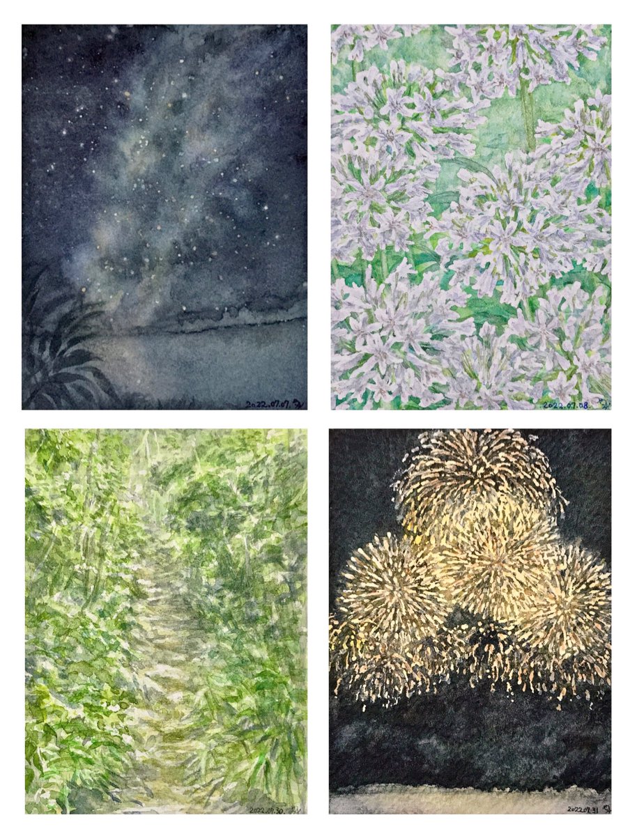 #今月描いた絵を晒そう (7月分です) 夏の水彩パレード、毎度、2、3枚で止まってしまっていた自分にとっては、今回大量な方でした(笑) 沢山のいいねやリツイートや、感想もありがとうございました! フォローもありがとうございます!