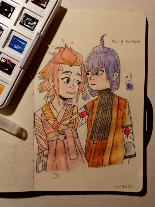 Day 8: Kimono I drew my two bnha oc's Kane and Spooky. They decided to switch styles that's why Kane is wearing a traditional kimono and Spooky is wearing a modern one. Inktober list by: @Heavenrose150 #HRInktober2019 #inktober #inktober2019 #Inktoberday8 #bokunoheroacademia
