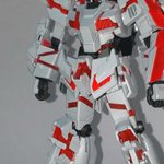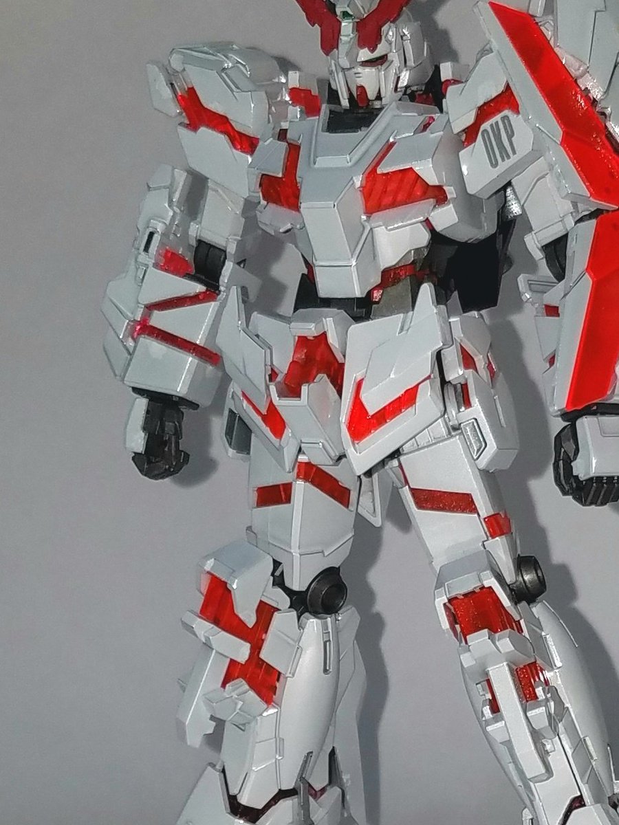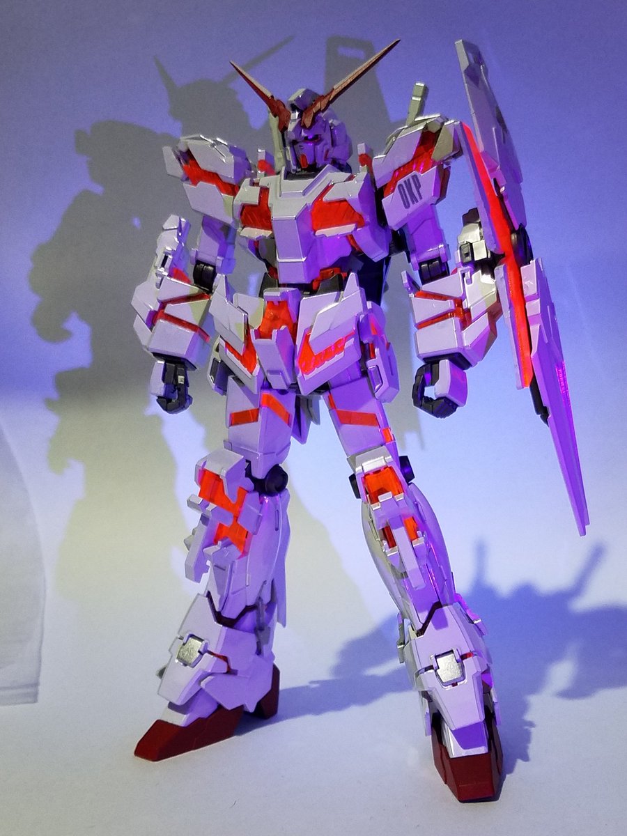チタニウムフィニッシュなんだけど写真じゃわかりにくいね フラッシュたくとなんとかそれっぽく見えるか ゲート跡が目立つのでガンマカ白でお手軽リタッチ サイコフレームは蛍光使ったのでブラックライトに反応する #ユニコーンガンダム #ガンプラ