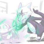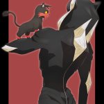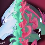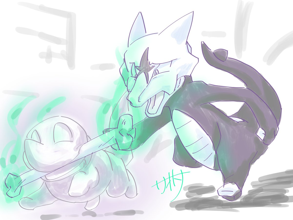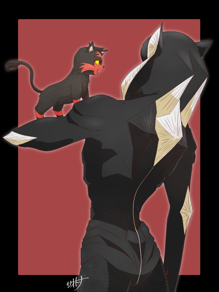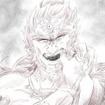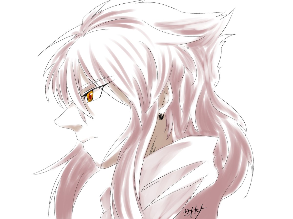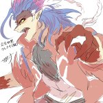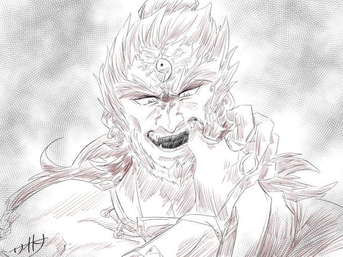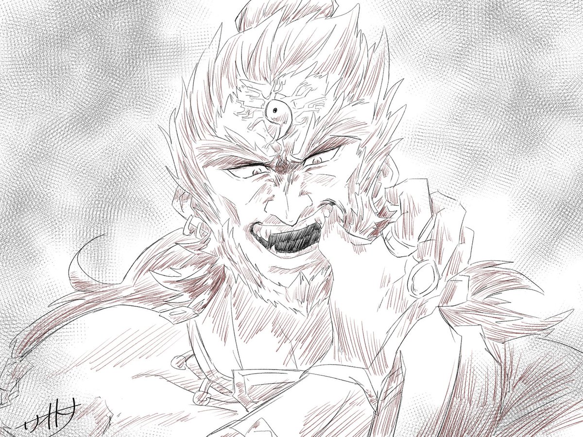 疑クレナイくんのバトルフォルムはこんな感じっていう落書きが出来た~~ 三つ編みで束ねてた髪が解けて逆立ってたり、口元と手だけ元に戻したりとかなんとか………耳のとんがりは完全趣味です(てか全部趣味による twitter.com/_boneguy1487/s…