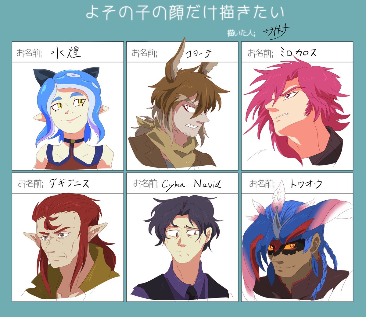 #よその子の顔だけ描きたい 大変長らくお待たせいたしました~~~~~!!!!!色々なよその子さまが描けてとても楽しかったです、リプしてくださった方々に大感謝~! twitter.com/_boneguy1487/s…