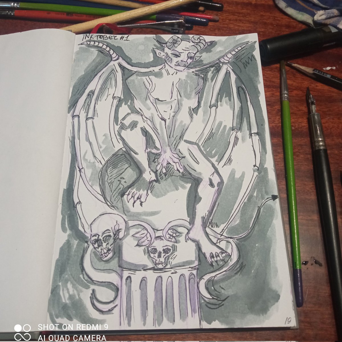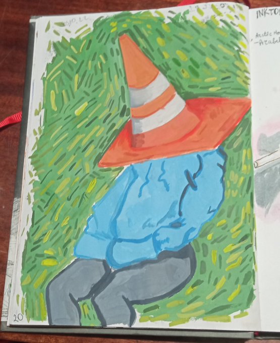 І так Тут ми маємо Інктобер, я знаю що його треба малювати власне чорнилами, але в мене тільки червоні, сині і чорні, а хотілось чогось яскравого. Тому от робота гуашшю на п'ятий день #Inktober #inktober2022 #інктобер #inktoberday5 #ArtistOnTwitter #УкрАртПідтримка #украрт