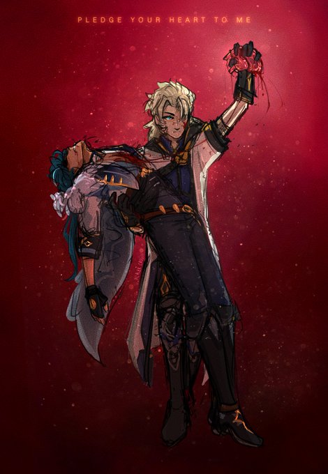 Kaeya: you know when I said I'll give you my heart this wasn't what I thought would happen #GenshinImpact #genshinimpactfanart #Albedo #Kaeya This spawned from crack RP and I regret everything /j