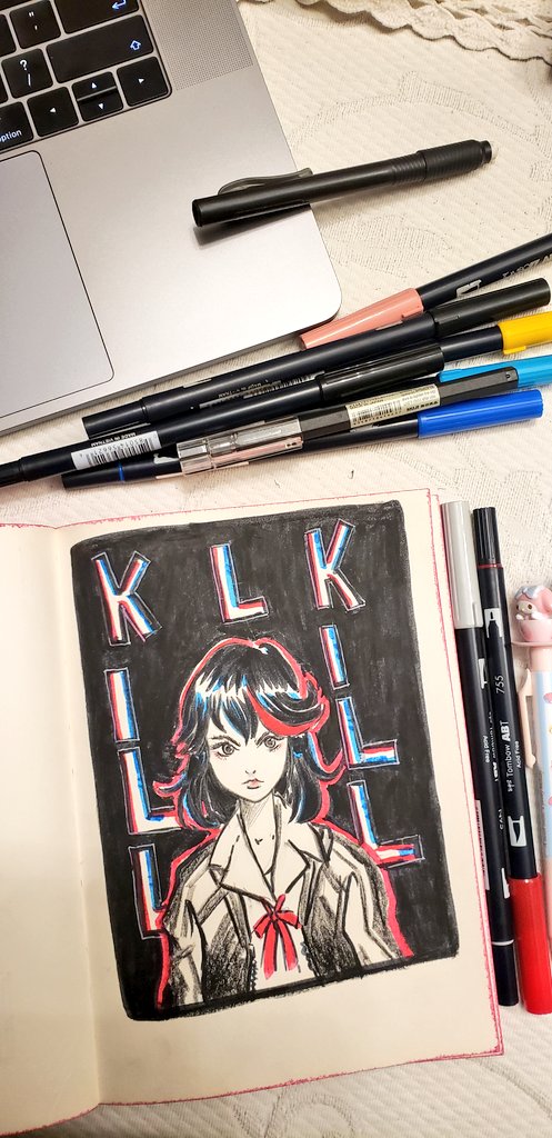 Gave up on a task and randomly decided to draw Ryuko Was rly nice to use tombows again My lesson from previous inktober tryouts is that i have to make more closed shapes so the drawing looks more solid. #killlakill #trigger #inktober #ink #RyukoMatoi #fanart