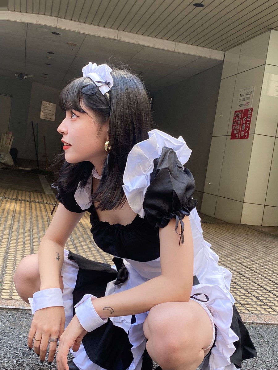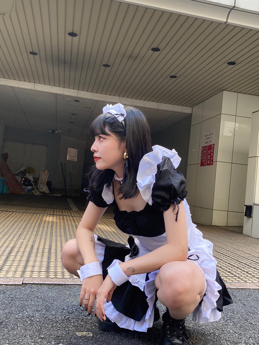 トークイベありがとうございました👻 この間のメイドとは違うのにした〜 実物見れたのは今日来てくれた君だけやね?🤫 いつもより長くお話しできたし沢山笑って楽しかったありがとう! ゆきなとお人形メイドになったよ💜🖤 #ゼロプロ #Halloween2022 #コスプレ #Halloween #セルしお