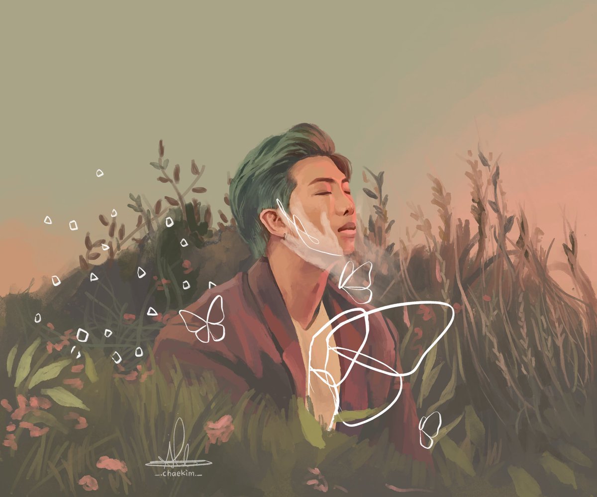 햇살에 조금 찌푸린 니 눈썹에 보드랍게 흔들리는 니 솜털에 니 향기에 취해 맘이 간질거려 By your eyebrows slightly grimacing at the sunlight By your soft hair shaking gently By your scent my heart tickles [Butterfly Prologue remix] #bts #rm #btsfanart