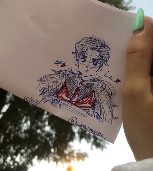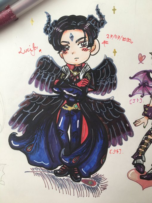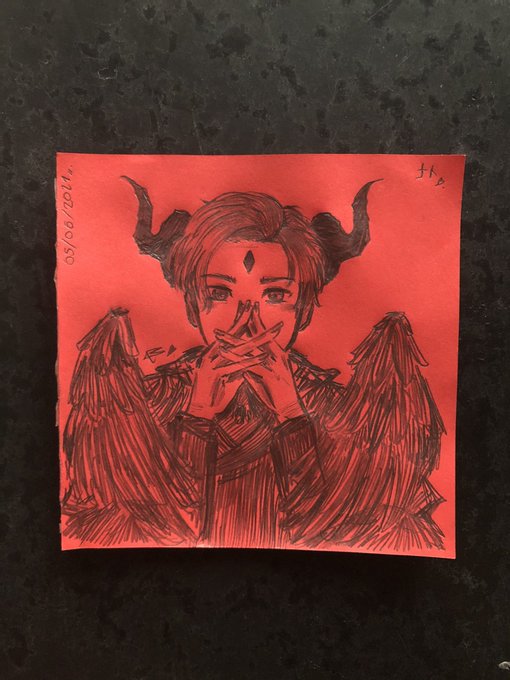 And then the next drawing👀 I’ve drawn Luci so much. When I saw the tiny red paper I was like: hmm what If I draw Lucifer in here And then, this is what I made shdjfj cool energy #obeyme #ObeyMeBD #obeymefanart #obeymelucifer #happybirthdaylucifer #おべいみー