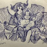 Did something in class..again😳 Think it turned out really prettyy And yeah that’s my Mc, Natnya (me xd) with my boys Luci, Mammon and Asmo (kings) #obeyme #obeymefanart #Obeymelucifer #ObeyMeAsmodeus #obeymemammon #おべいみー