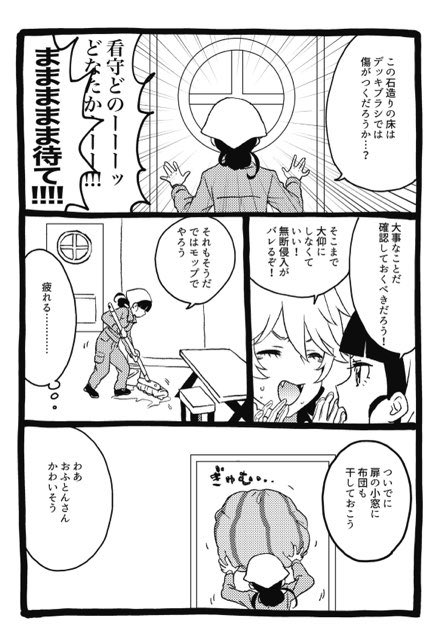 59 102 12/30(金)コミケ101 一日目、東メ19bちむら新刊出ます! よろしくお願いします〜!!! 独房を掃除する話です。 独房の扉の窓、ガラスあったかもしれないと昨日思ったけどまあいいよね!! 22/12/28 10:35