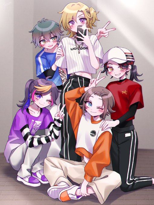 「居た!!!!!」 Luxiem School AU 🏫...🚃💨 💙🧡💛💜❤️ #drawluca #Ikenography #MystArt #YaminoArt #Akurylic #Luxiem