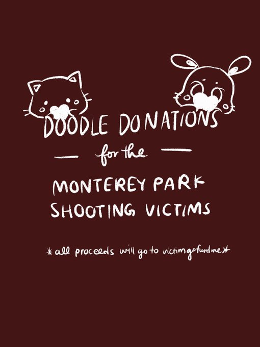 in light of the shooting in Monterey Park, i’ve opened doodle commissions to donate all proceeds directly the victims’ gofundme. kofi link is in the comments and i will be taking requests up to 1/25. please reach out if you have any questions or unique requests.