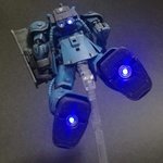 #ツイッターで楽しむジ・オリジン かなり昔に作ったヴァッフ この時はまだ電池内蔵式にこだわっておりました( ´ー`) モノアイ、背面バーニア、足裏バーニアの5ヵ所を発光させてますよ #ガンプラ