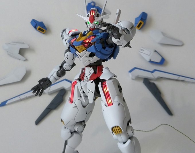 やっと晴れた☀️‼️ なんとか納得のいく写真が撮れました(*>∀<*)ノ 良かったら見てやって下さい❗️ 配線丸見えは突っ込まないでねw #水星の魔女 #ガンダムエアリアル #ガンプラ #電飾 #ガンプラ電飾 #ガンプラの画像貼るとRTされると聞いて