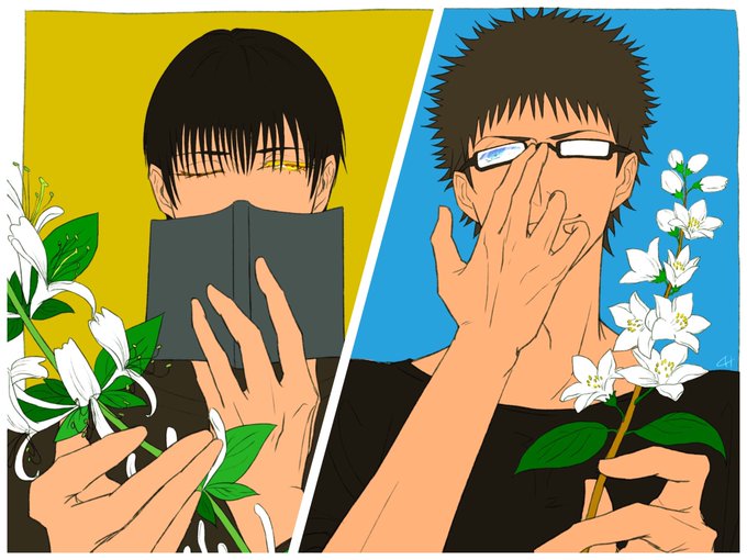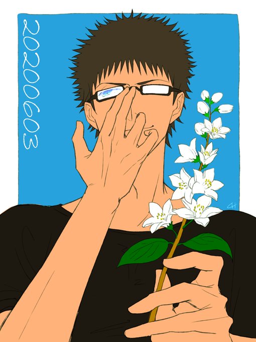2人ともおめでとう🎉 博士が持っている花は6/4の誕生花ウツギ。花言葉は「秘密」「古風」 教授が持っているのは6/3の誕生花スイカズラ。花言葉は「献身的な愛」 #乾貞治誕生祭2020 #柳蓮二誕生祭2020