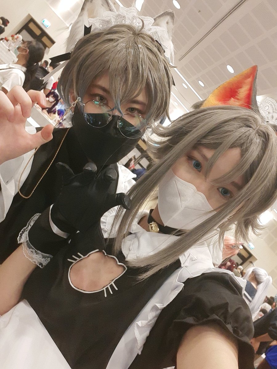 Maid Mysta and Ike 🧡💙 🧡🦊🖋️💙 #MystArt #MystaRias #MystariASS #Ikenography #IkeEveland #YikesMemeland #MystaWorldWide #NijisanjiEN #Nijisanjicosplay