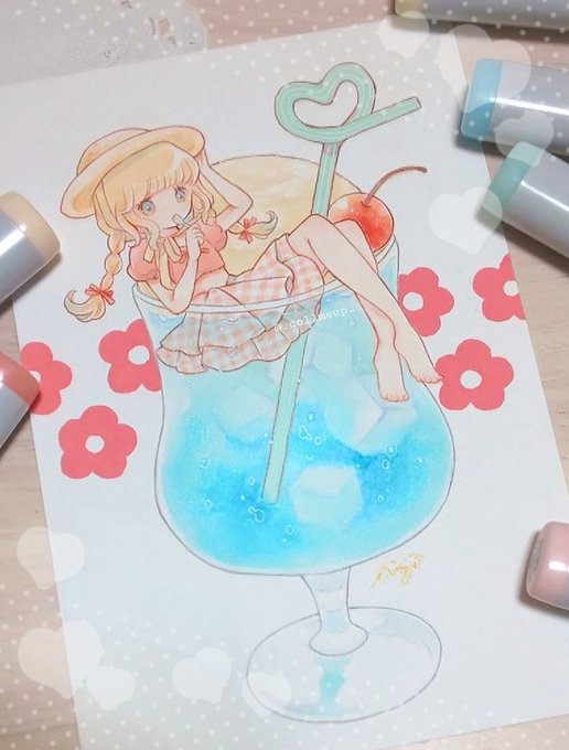 しゅわしゅわ 𝚜𝚞𝚖𝚖𝚎𝚛 𝚝𝚒𝚖𝚎🍹🧊👒 #コピック