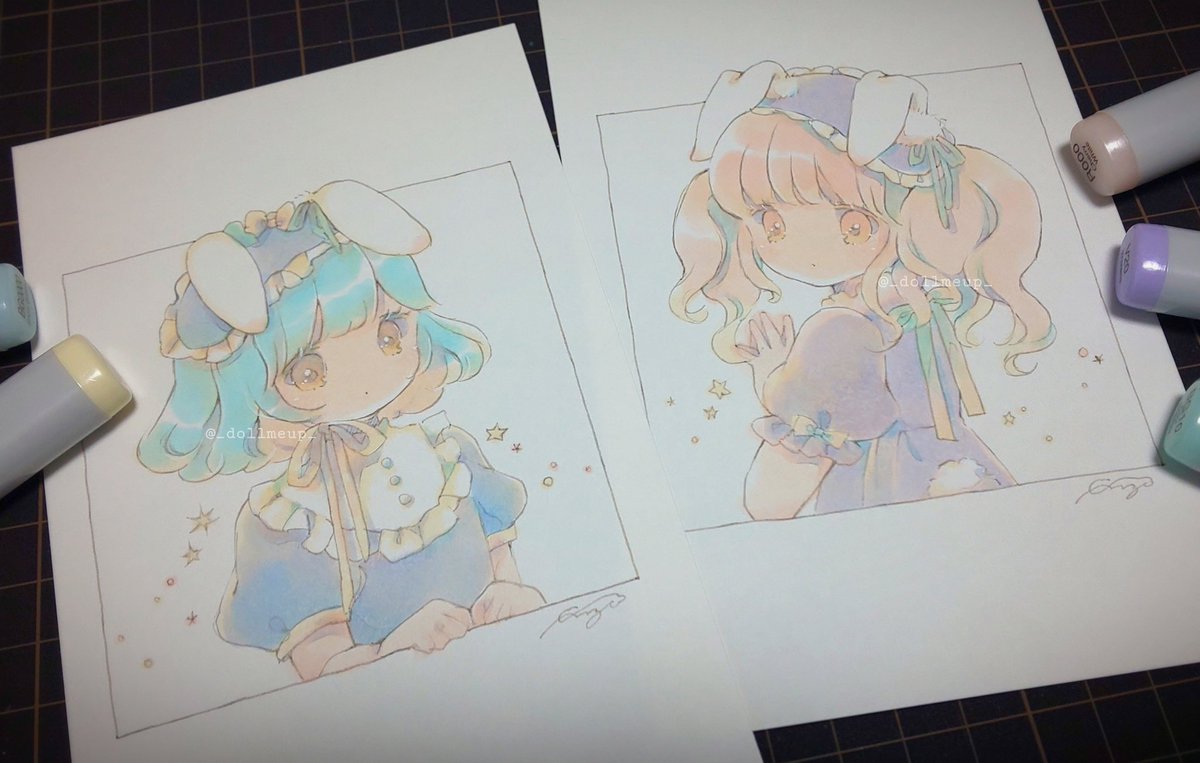 20 123 うさみみtwins🐰🐰 #バニーの日 #コピック 23/08/02 20:46