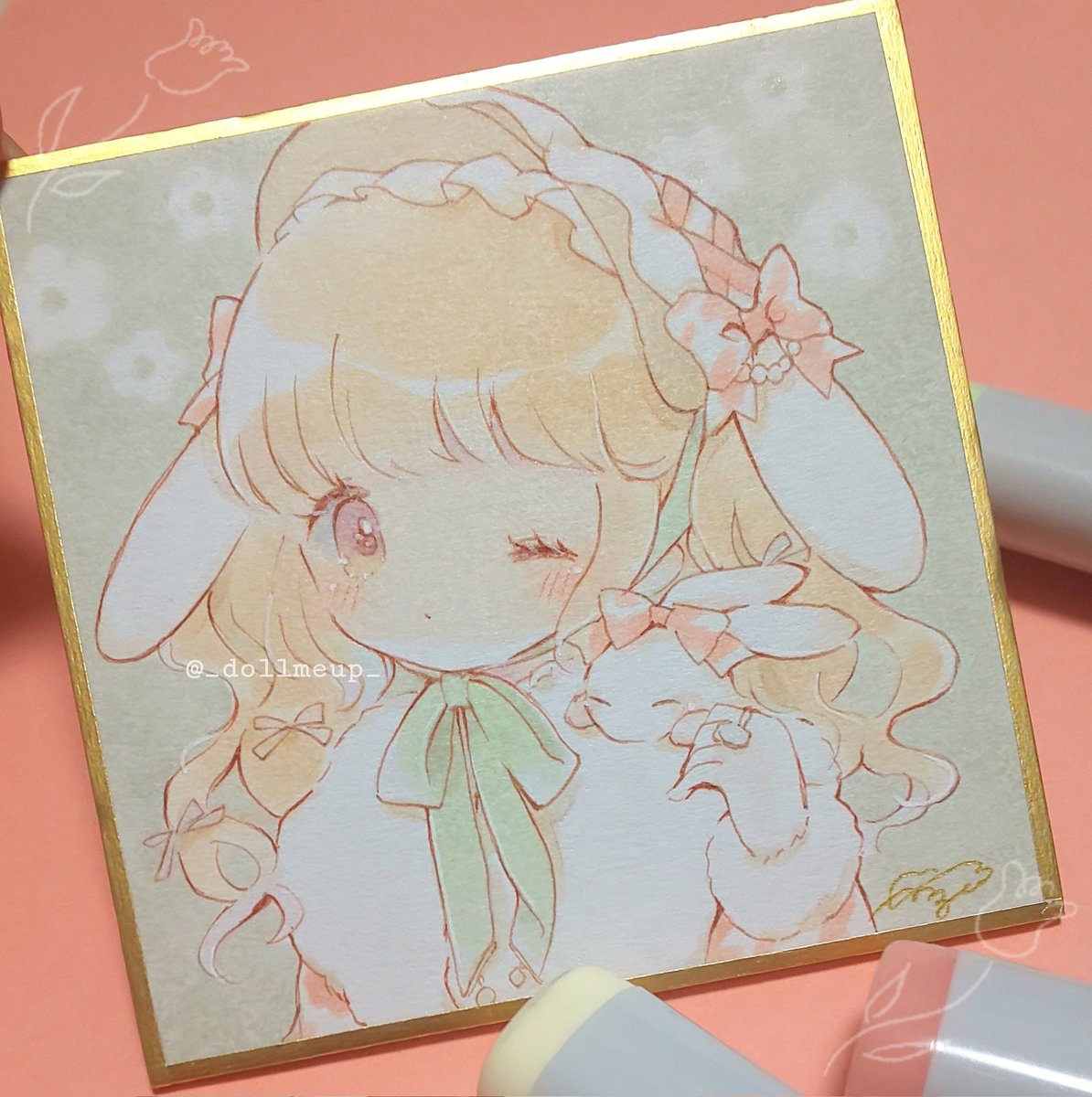 淡淡うさぎ🐰🎀🐰 #コピック #ATCつくりました