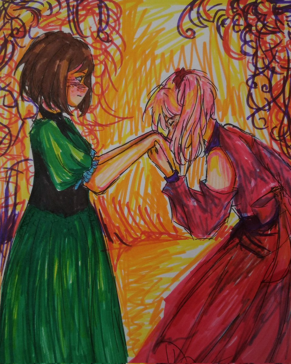- слыхали? принц наш крестьянку в замок привёл! - крестьянку и в замок?! - а как же! художница. руки у ней позолочены, а лицо солнцем поцеловано! #mizuena #prsk_FA