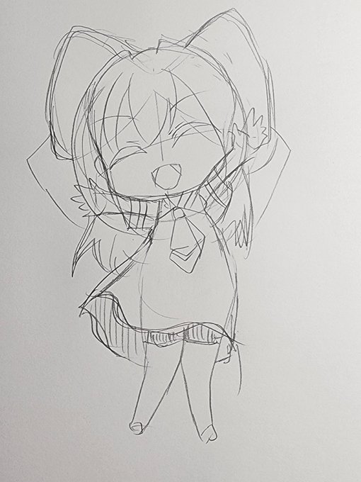 0 6 こんな感じの動きのあるミニキャラを色々描きたい………。左手はラフ。右が完成系。 #コピック #イラスト 23/04/15 02:49