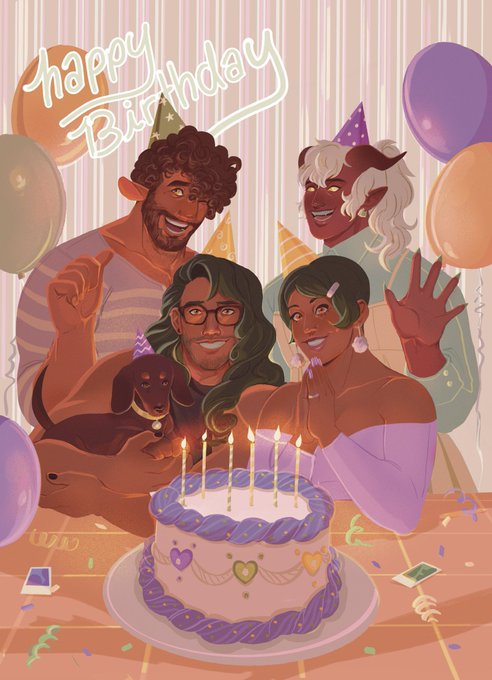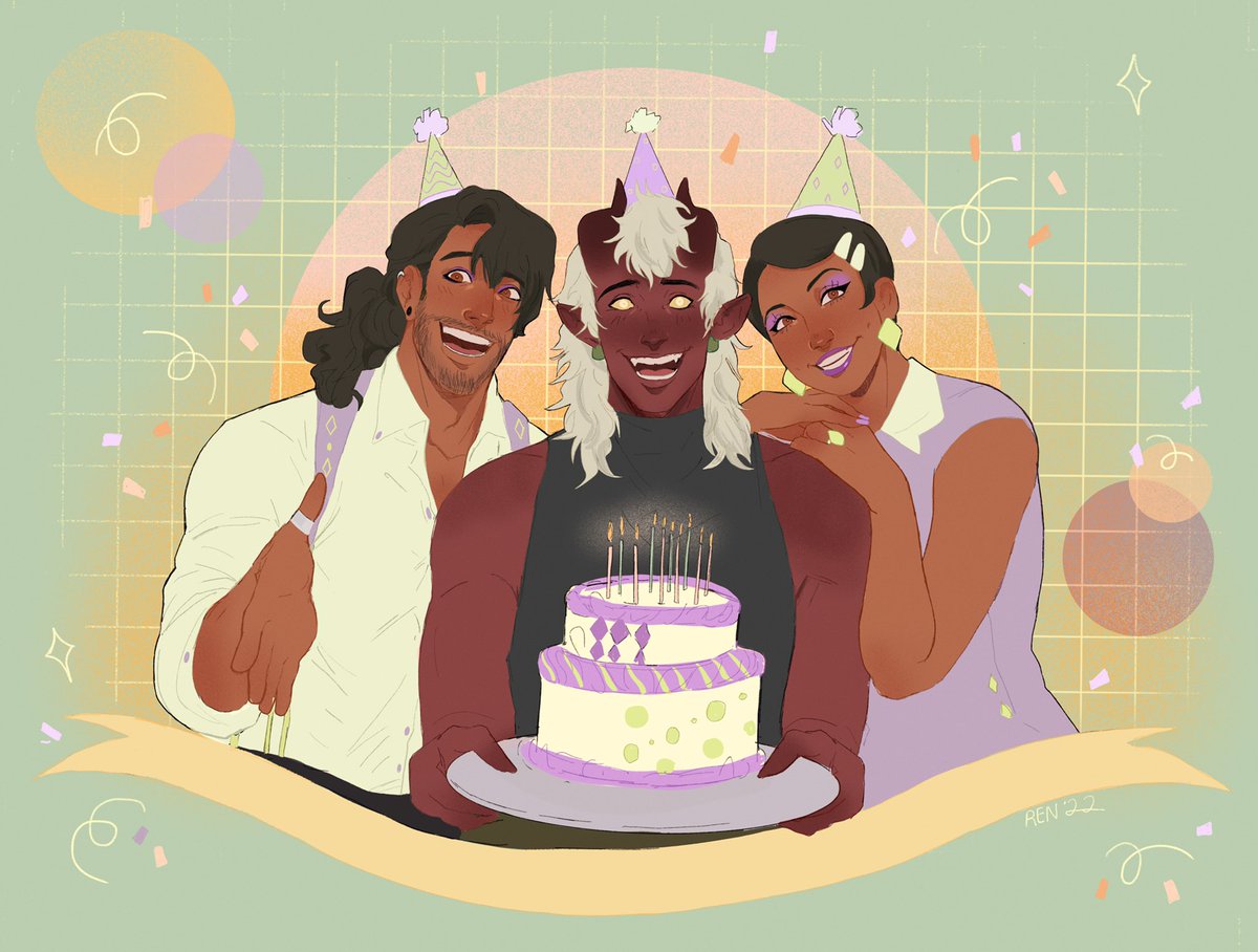 [oc] POV: you and your twin ocs share the same bday, wowieeee! Continuing the annual bday art again this year 💜💚💛🎂🎊🎉 . . . #originalcharacter #illustration #artph #Procreate