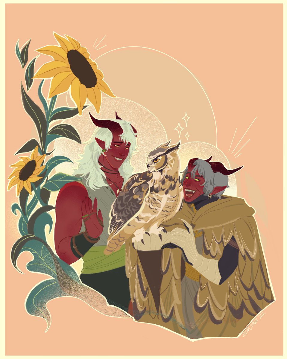 kinda-sorta a redraw of Zary and Amara from last year! :’) #ocs #originalcharacter #dndart #dndcharacter #tiefling #procreate