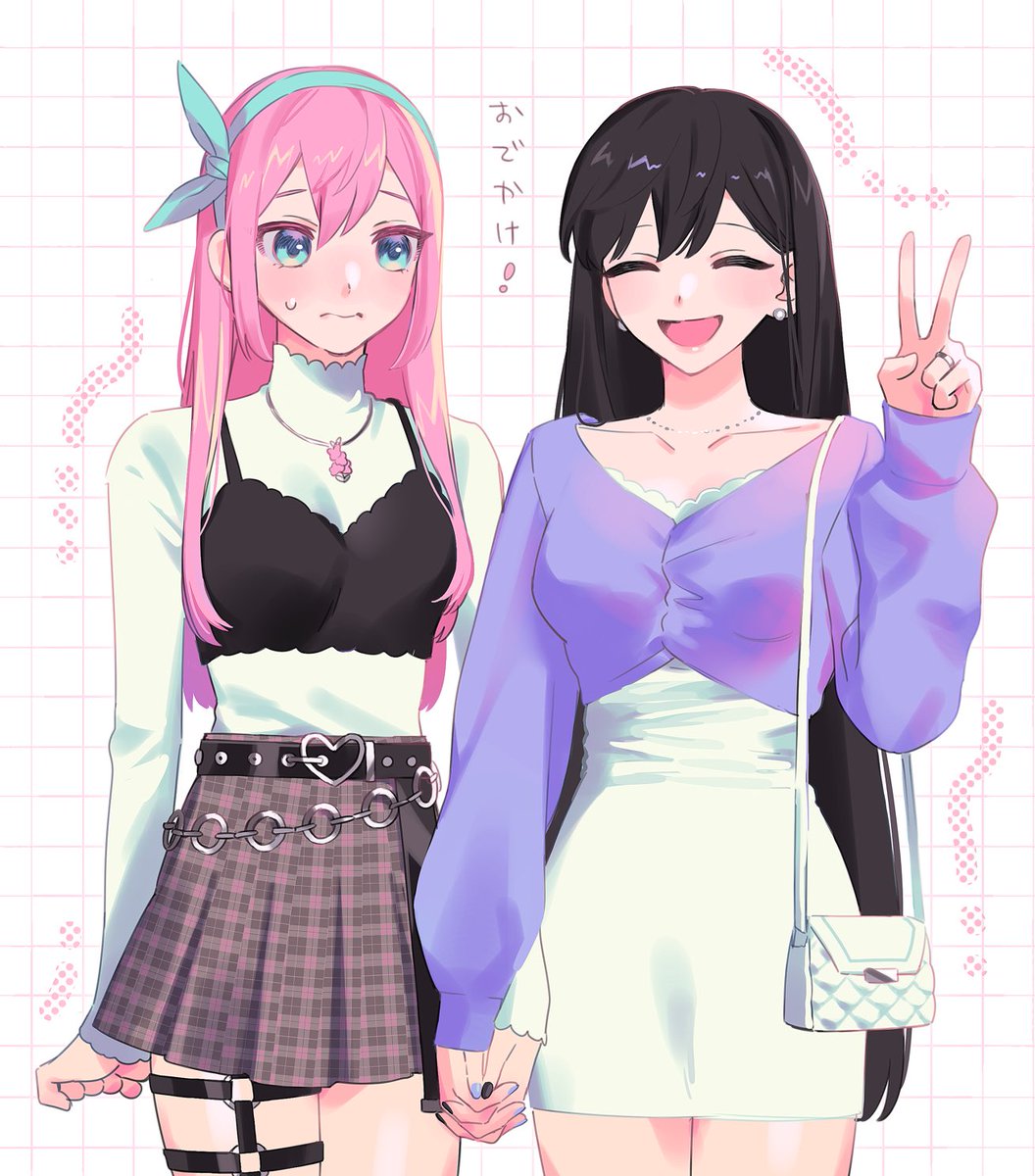 571 2724 #OMORI #OMORIFANART 友達のOMORI完走祝いに送った大学生マリと高校生オーブリーです 22/03/16 21:01
