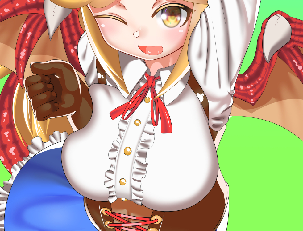 ハロウィンの怪物×メイドの誰デザで自分がデザインしたのは①の褐色の子でした!!!アンケートがすごい偏ってた!!!