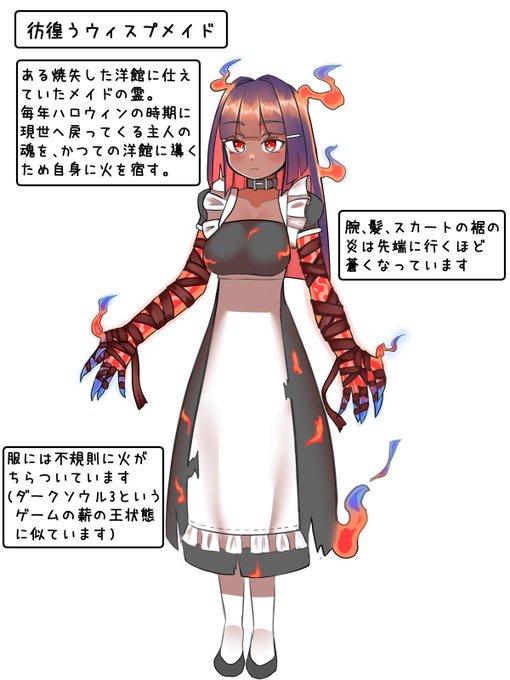 23 58 ハロウィンの怪物×メイドの誰デザで自分がデザインしたのは①の褐色の子でした!!!アンケートがすごい偏ってた!!! 20/10/31 00:34