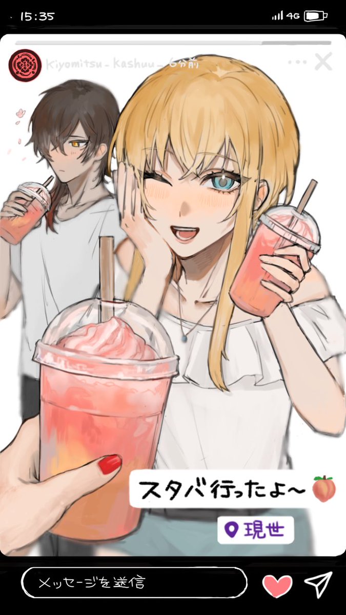 112 1086 映画みた記念💮 膝丸と抹茶らてまきあーと 23/04/03 23:06