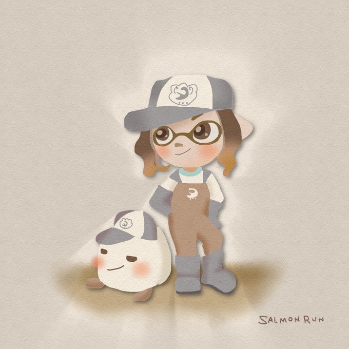 今度出る茶色の作業着可愛くて 過去絵(2のサーモンラン)を ちょこっとリメイク✐☡ 茶色きっとすっごいウロコの数 いるんだろな…(꒪⌓︎꒪)クマめ! #splatoon3 #スプラトゥーン3 #スプラトゥーン #イラスト
