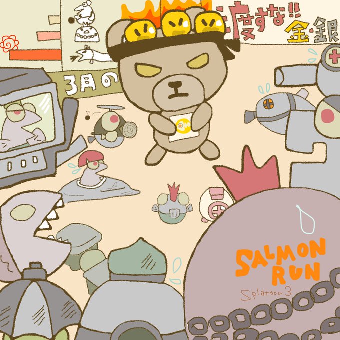 12 99 今度出る茶色の作業着可愛くて 過去絵(2のサーモンラン)を ちょこっとリメイク✐☡ 茶色きっとすっごいウロコの数 いるんだろな…(꒪⌓︎꒪)クマめ! #splatoon3 #スプラトゥーン3 #スプラトゥーン #イラスト 23/02/23 11:03