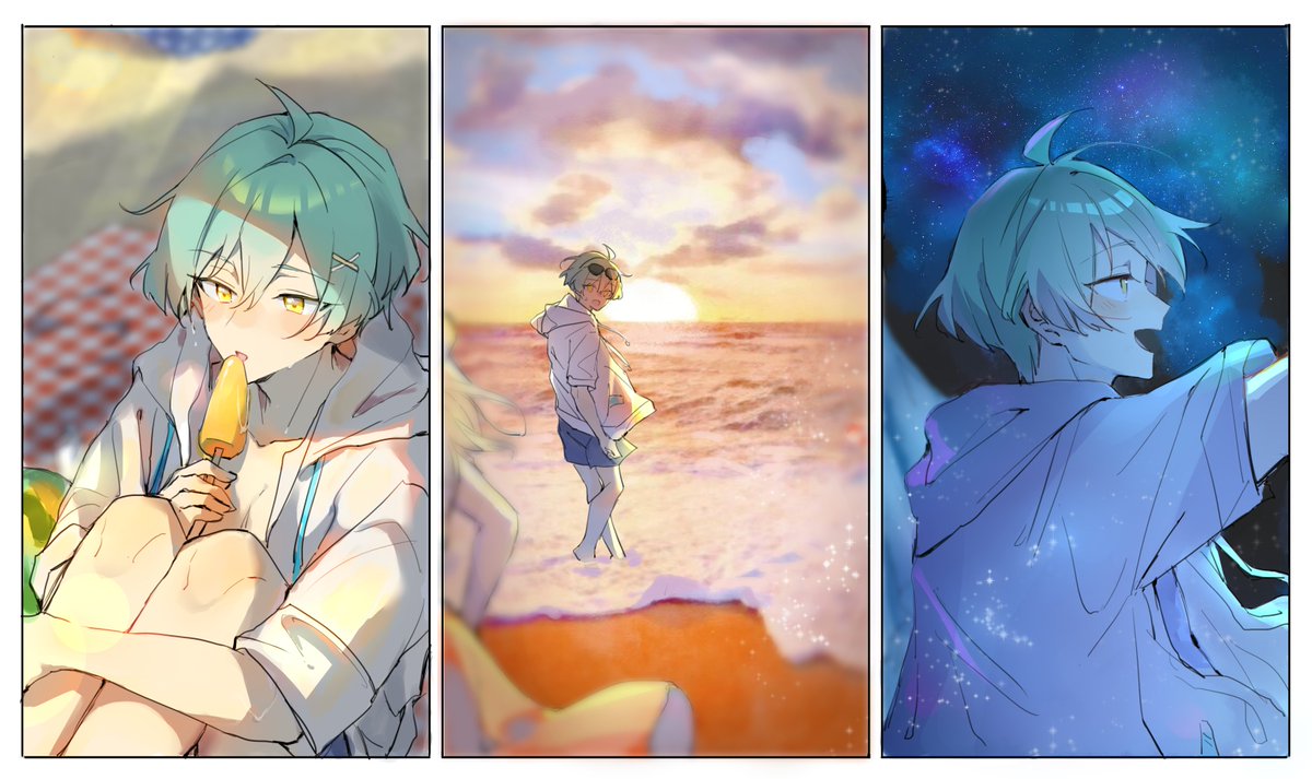 あいす・うみ・よぞら 夏のある日~~☀️☀️ #はるみなワンドロ