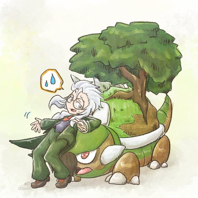 先ほどのお絵描き配信で、白昼月下【時塚玄影】さんとドダイトスのイラストを描かせていただきました🐢🌿 ちょっと脱力した雰囲気なトレーナーさんを小突いてる様子にしてみました☺️ twitter.com/maskedridergt/…