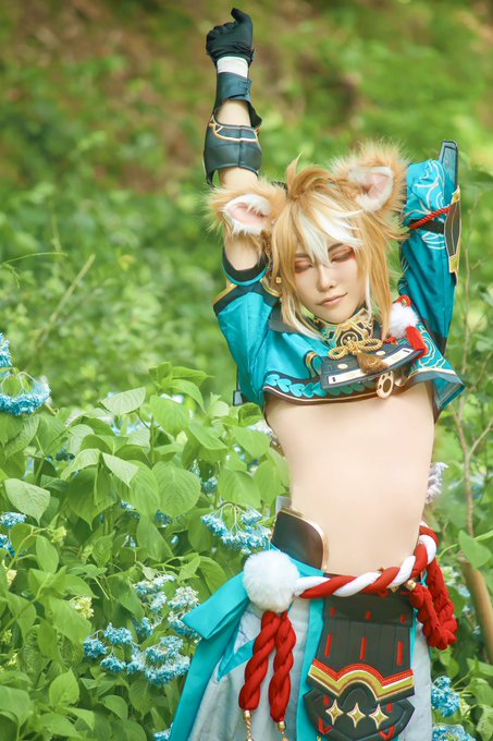 COS/原神 ゴロー 紫陽花𓂃 𓈒𓏸𑁍 photo…@hal_lia021 #おでかけにくきゅう