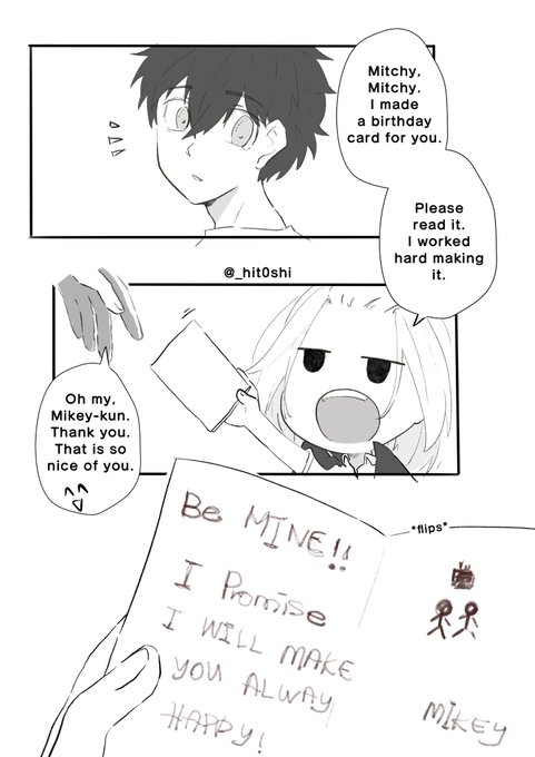part-timer at TR kindergarten au happy birthday izana! #東卍FA#maitake#izatake day 124: “mikey-kun introduced his brother! izana-kun seems like a good kid”