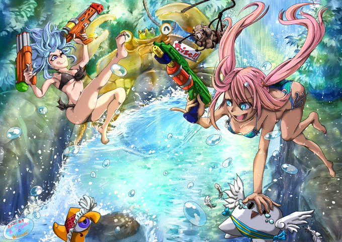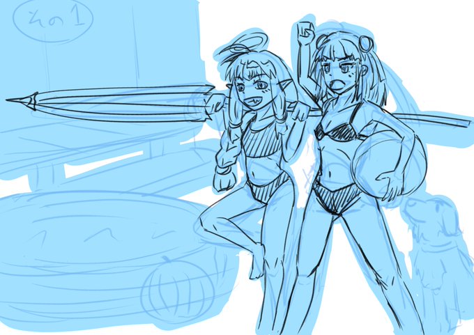 7巡目の構図案を3つほど描いてみました ここ最近あっついのでテーマは「うちの子たちの水遊び」 どれにしようか悩むのでリプで反応もらえると嬉しいな ₍₍(ง˘ω˘)ว⁾⁾ #wip #イラスト好きな人と繋がりたい #アトリエの系譜