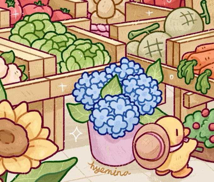 A duckling farmer is setting up some flowers🐥🍃🥕🪻💐🌻
