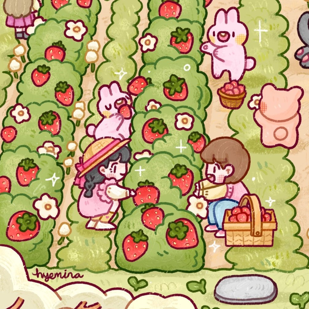 Anyone can't disturb their happiness 🍓🐰🌸🐻🍃🌱💌