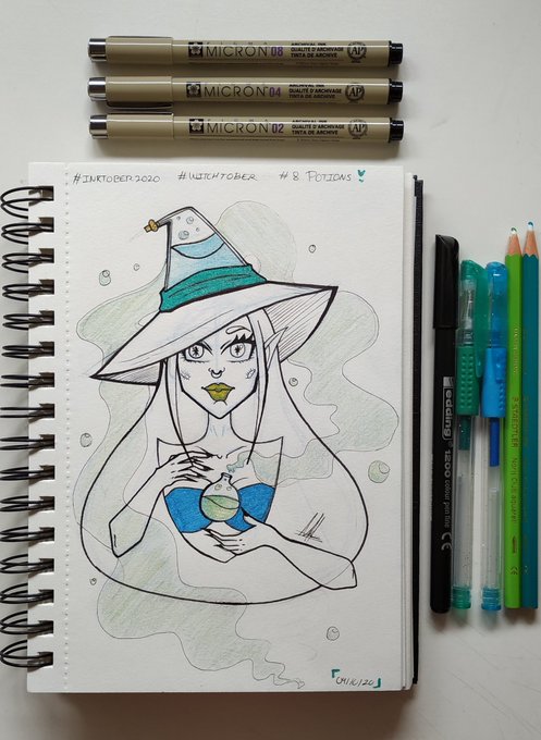 🧪 [8.Potions] 🧪 • • • Instagram: instagram.com/hyukiee_ilu?ig… #inktober2020 #witchtober2020 #day8 #potions #pociones #witch