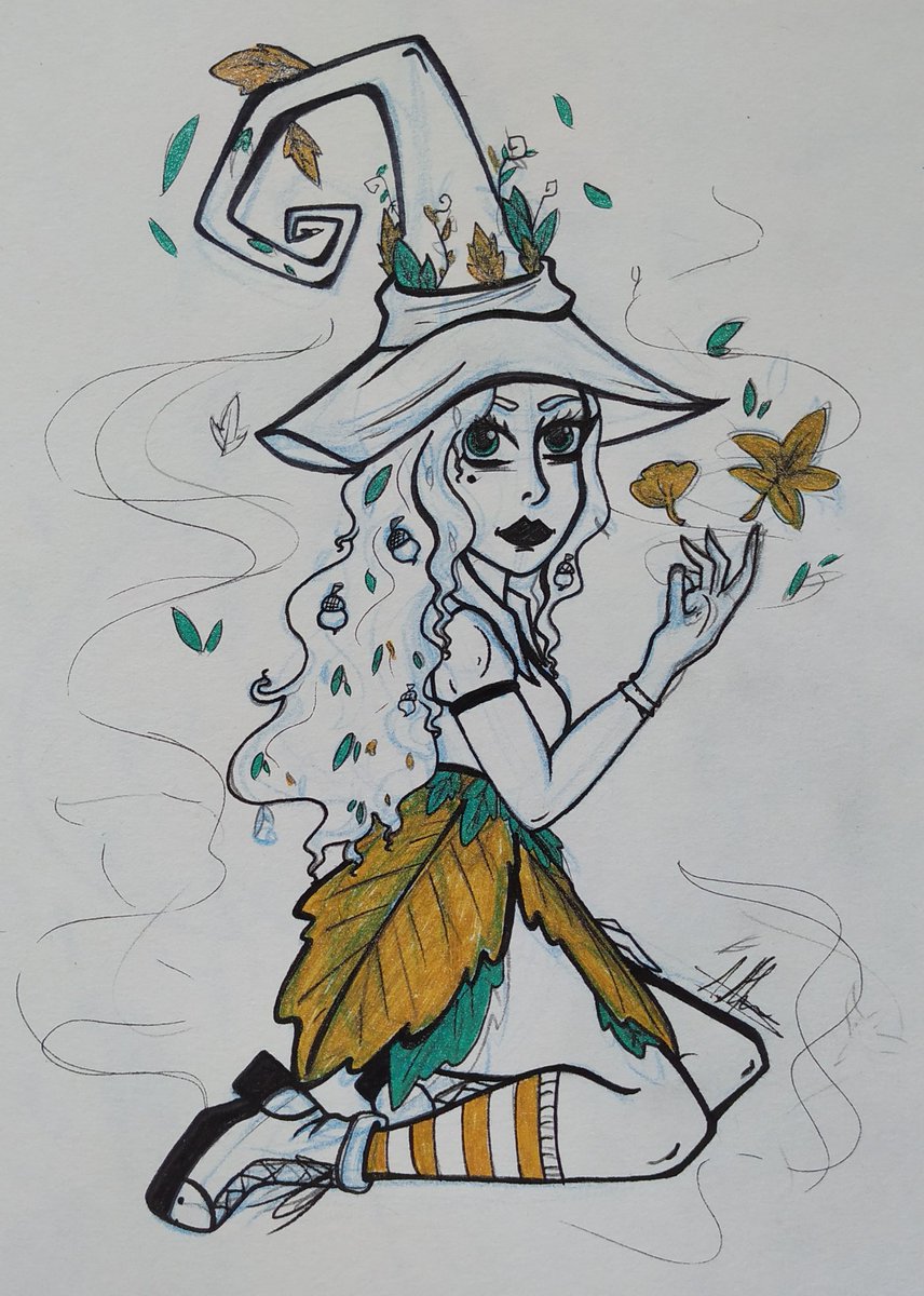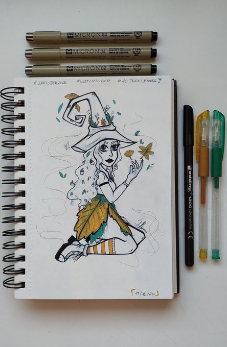 🌿[10.Tree Leaves]🌿 • • • Instagram: instagram.com/hyukiee_ilu?ig… #inktober2020 #witchtober2020 #day10 #treeleaves #hojasdeárbol #witch