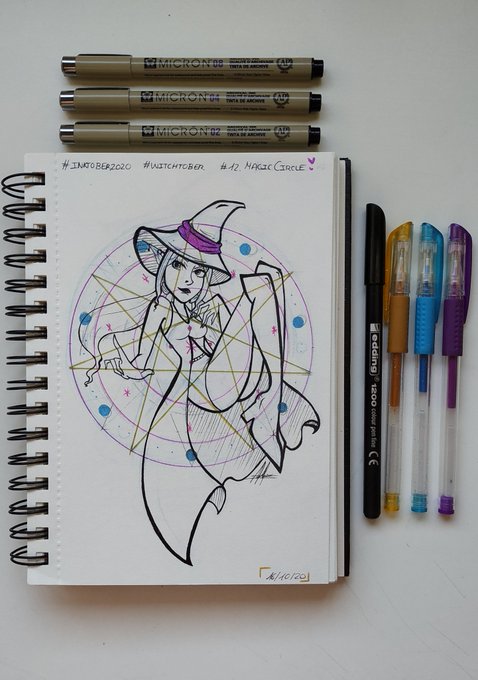 💫 [12.Magic Circle] 💫 • • • Instagram: instagram.com/hyukiee_ilu?ig… #inktober2020 #witchtober2020 #day12 #magiccircle #círculomágico #witch
