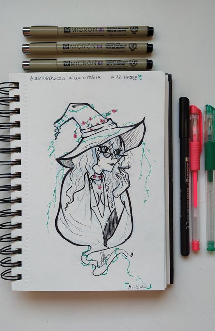 🌿[13.Herbs]🌿 • • • Instagram: instagram.com/hyukiee_ilu?ig… #inktober2020 #witchtober2020 #day13 #herbs #hiervas #witch