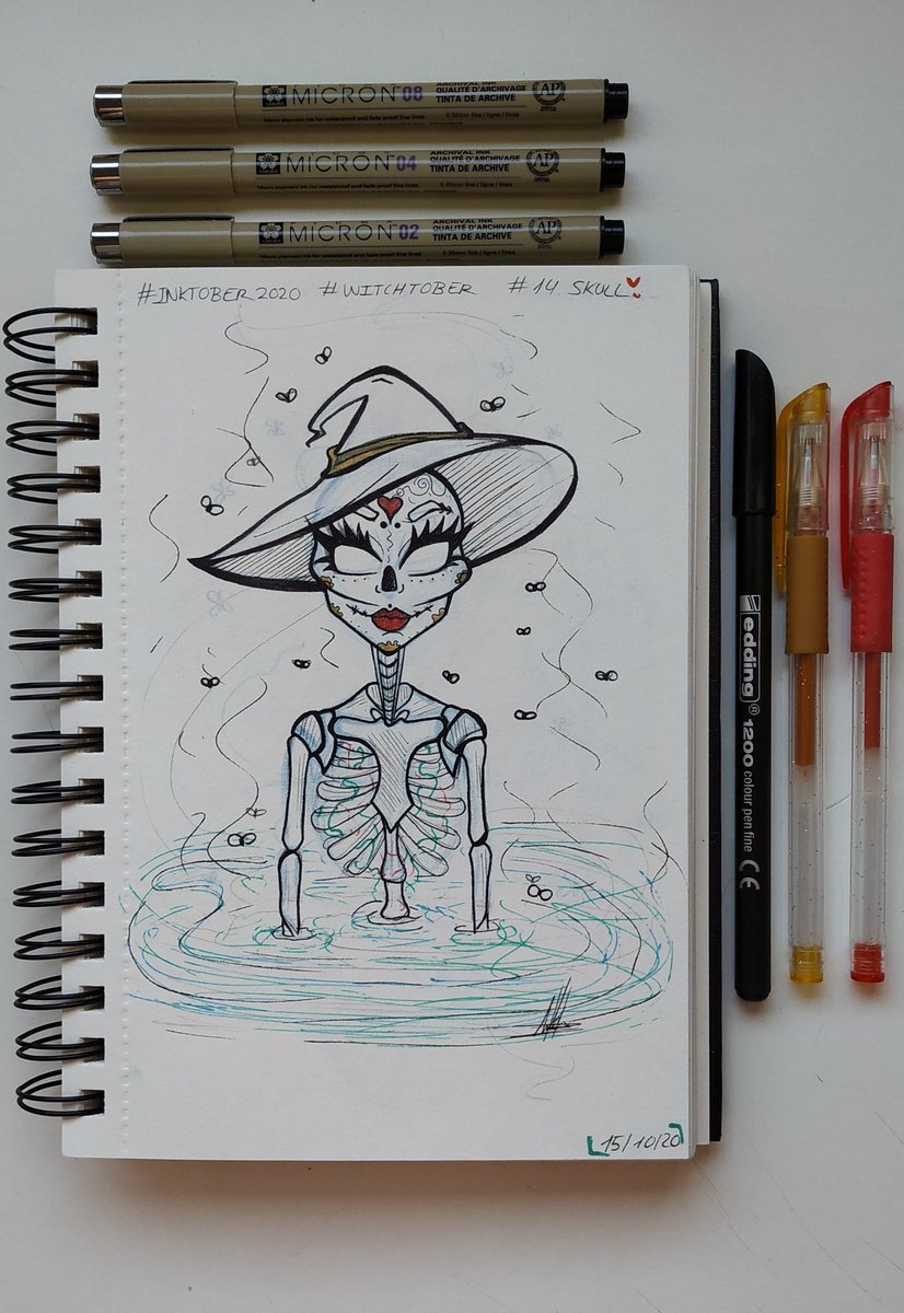 💀[14.Skull]💀 • • • Instagram: instagram.com/hyukiee_ilu?ig… #inktober2020 #witchtober2020 #day14 #skull #esqueleto #witch