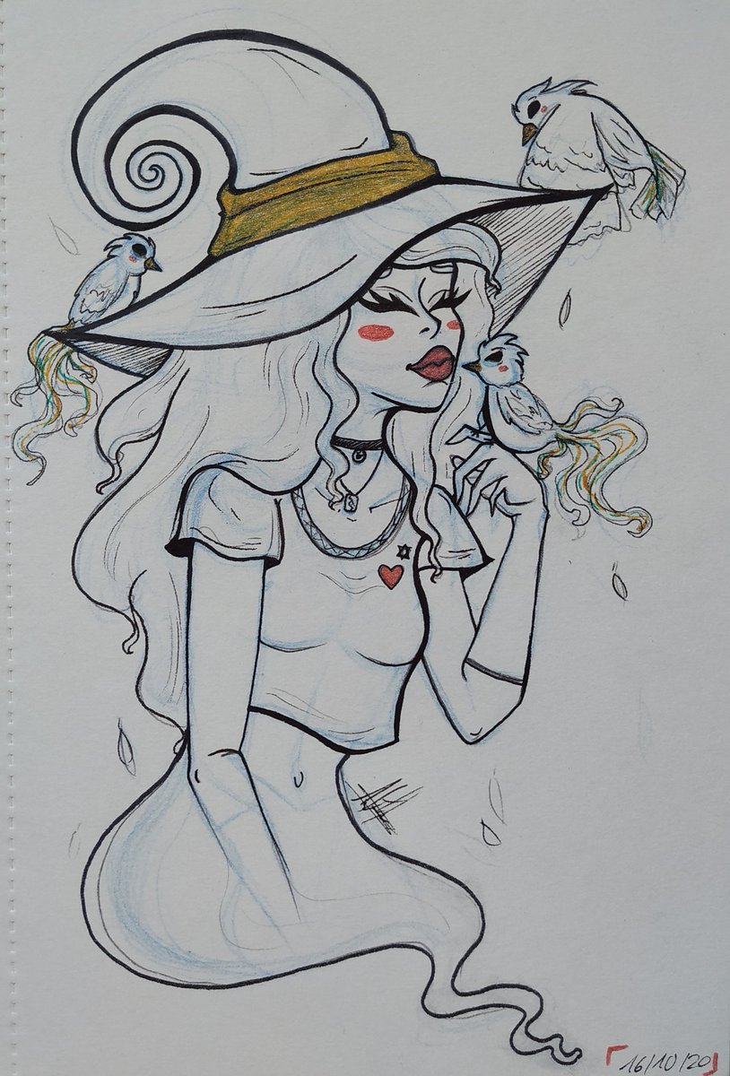 🐦[16.Birds]🐦 • • • Instagram: instagram.com/hyukiee_ilu?ig… #inktober2020 #witchtober2020 #day16 #birds #pajaros #witch